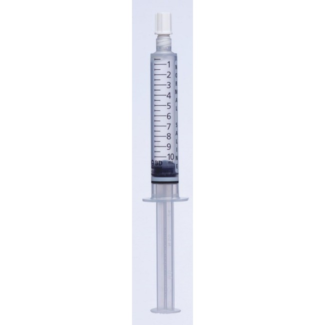 The syringe features a BD Luer-Lok™ tip with concentric orientation to provide secure, leak-free connections with IV lines, catheters, and infusion devices. Graduated markings at 0.5 mL increments allow precise control of flush volume, supporting accurate administration and facilitating documentation of fluid delivery. The prefilled design eliminates the need for manual preparation, reducing contamination risk and improving workflow efficiency in clinical settings.